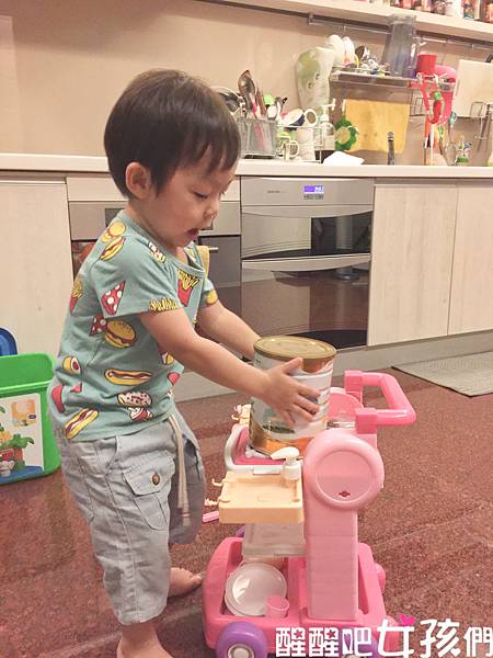 搬到他的扮家家酒車上,準備泡給我喝~